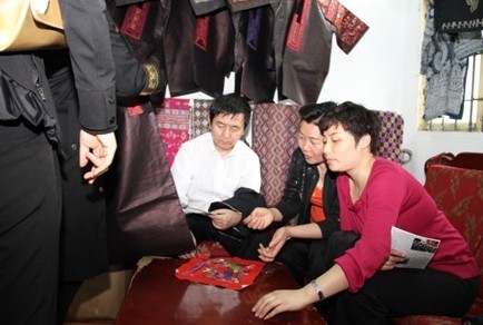 鄧健副廳長在施洞考察了臺江縣錦繡圖騰工藝品有限公司等從事苗族刺繡工藝生產的企業。這些企業主要生產苗族各類傳統盛裝、苗繡時裝、工藝旅游包等,產品遠銷香港澳門、臺灣、新加坡、馬來西亞、美國和日本等國家和地區。