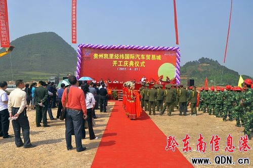 4月27 日上午,由浙江泰地集團、山西鑫礦有限公司以及凱里經濟開發區中宇房產公司合作開發,總用地面積600畝,總投資人民幣18億元的黔東南最具投資發展潛力的貴州凱里經緯國際汽車貿易城在凱里經濟開發區開工建設。
