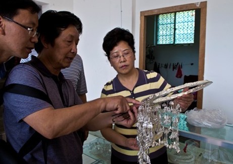 9日,考察組一行在雷山縣銀飾一條街、西江鎮,臺江縣施洞鎮考察銀飾、刺繡生產經營情況。考察現場秦紅總工一面向老藝人和經營者以及相關管理部門,細致了解了銀飾、刺繡的生產過程,一面頻繁與陪同人員、學者討論,表示:苗族銀飾刺繡等民族工藝品內涵豐富,在深入研究的基 礎上科學的制訂產品標準,為規范市場、保護消費者權益提供技術支撐是當務之急,省質監將盡可能地提供幫助。