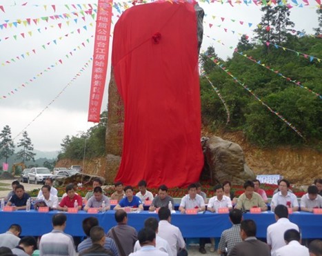 揭牌儀式上,臺江縣人民政府縣長楊昌彪代表縣委、縣政府致辭,副州長姜學東作了講話,副州長姜學東、州人大常委會原副主任楊谷生、臺江縣委書記楊德濤、臺江縣人民政府縣長楊昌彪共同為貴州黔東南苗嶺國家地質公園臺江園區標志碑揭牌。