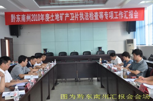 7月21日下午15時(shí),在黔東南州國(guó)土資源局9樓會(huì)議室召開(kāi)匯報(bào)會(huì),黔東南州人民政府副州長(zhǎng)姜學(xué)東出席匯報(bào)會(huì),州國(guó)土資源局局長(zhǎng)秦剛、副局長(zhǎng)楊林、楊光成、紀(jì)檢組長(zhǎng)汪明海、總工程師張佑清參加匯報(bào)會(huì)。秦剛局長(zhǎng)首先匯報(bào)黔東南州2010年度土地礦產(chǎn)衛(wèi)片執(zhí)法檢查、打擊非法開(kāi)采礦產(chǎn)資源行為、“兩整治一改革”以及“三項(xiàng)清理”等專項(xiàng)工作進(jìn)展情況。姜學(xué)東副州長(zhǎng)在會(huì)上作了講話,就如何加強(qiáng)國(guó)土資源管理工作提出了三個(gè)方面的建議。省國(guó)土資源廳督查組在聽(tīng)取匯報(bào)后,對(duì)黔東南州開(kāi)展專項(xiàng)工作取得的成效給予肯定,同時(shí)也對(duì)存在的問(wèn)題提出了意見(jiàn)和建議。趙震海副廳長(zhǎng)在講話中,對(duì)黔東南州開(kāi)展土地礦產(chǎn)衛(wèi)片執(zhí)法檢查、打擊非法開(kāi)采礦產(chǎn)資源行為、“兩整治一改革”、“三項(xiàng)清理”、地質(zhì)災(zāi)害防治、礦產(chǎn)資源勘查等工作提出要求。