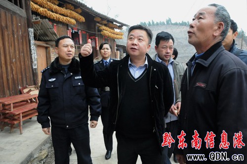 元月10日,州委常委、州政法委書(shū)記、州公安局局長(zhǎng)王家黔深入到麻江縣下司鎮(zhèn),進(jìn)村入戶(hù),開(kāi)展“三訪三評(píng)”大走訪活動(dòng),訪民情、察民意,釋民惑、惠民生,廣泛征求廣大人民群眾對(duì)公安工作意見(jiàn)和建議。