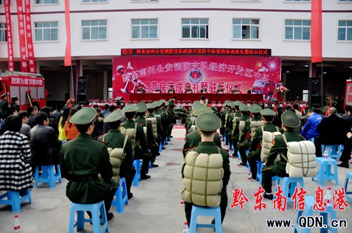儀式上,州消防支隊負責人宣布凱里經濟開發區消防中隊成立命令;趙音強、黃遠良為中隊授牌;駐兵代表作表態發言。