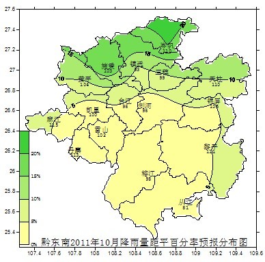 2、降水量預報:全州各地月降水量為80~120毫米,與常年同期比較,東北部地區偏多20%左右。其余地區偏多5%左右(詳情見右圖)