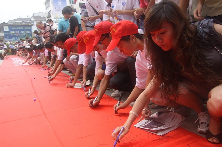 志愿者注冊啟動儀式上,老干部、青年和學生志愿者代表先后作了表態發言,還舉行了萬名志愿者簽名活動。