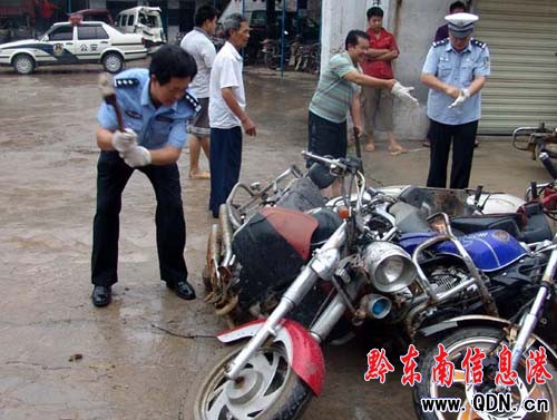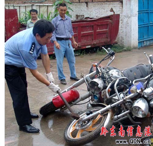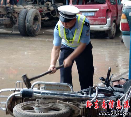 本港訊 (舒秀鋒 特約記者 唐光新 攝影報道)為了消除事故隱患,預防和遏制重、特大道路交通事故的發生,7月12日,施秉縣公安局交警大隊公開集中強制報廢近期查獲的涉牌涉證機動車18輛(17輛摩托車和一輛小轎車),不僅打擊了報廢車上路的違規行為,也給那些車輛即將報廢的車主敲響了警鐘。