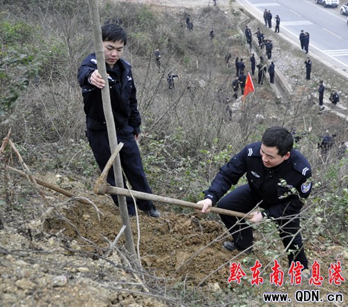 煙花三月春意昂 漂城交警植樹忙(組圖)