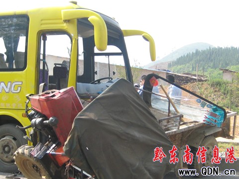 大客車與拖拉機(jī)強(qiáng)烈“接吻” 兩敗俱傷(圖)