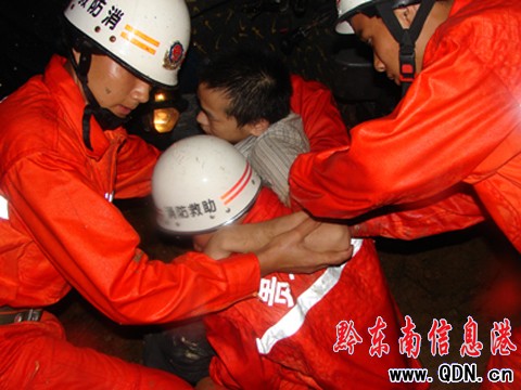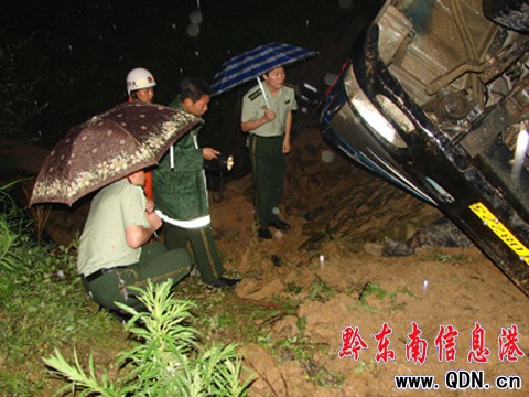 本港訊(石景剛 特約記者 張正特)2009年7月2日19時21分,黃平大隊“三臺合一”接警系統接到報警,稱在重安至黃平5公里處發生一起交通事故,兩人被困,情況十分危急,請黃平大隊官兵迅速趕往救援。接警后,大隊教導員祝飛元立即帶領一輛指揮車、一輛特勤車干戰13名火速趕往事故現場。