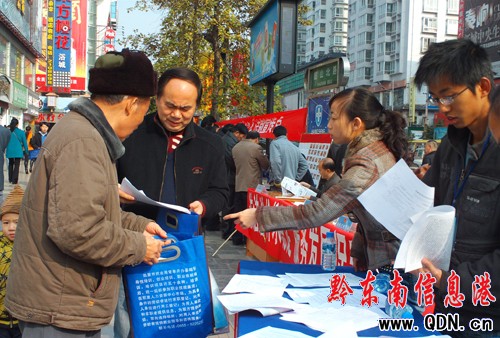 記者看到各部門不僅向過往行人發(fā)放宣傳單及相關(guān)法律知識手冊和條例,還向過往的行人解答說明在生活中遇到的法律疑難問題。記者看到特別是律師事務(wù)所和勞動(dòng)保障部門十分熱捧前來詢問的市民是絡(luò)繹不絕。此處活動(dòng)收到了很好的社會(huì)效果。