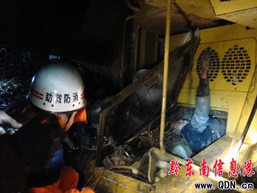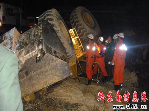 本港訊 (馮萬鵬 特約記者 張正特)12月10日晚19時33分,榕江縣載麻鄉路段一輛大噸位鏟車直接撞向堡坎,側翻在稻田里四腳朝天,駕駛員全身被牢牢地卡在鏟車底部,臉色蒼白,不停地痛苦呻吟。而鏟車油箱內的柴油也在不斷涌出,現場彌漫著濃濃的柴油味。接警后,9名榕江消防官兵趕赴事故現場,通過吊車將鏟車吊起,經過20分鐘的救援,終于將被困駕駛員成功救出,并送往醫院。