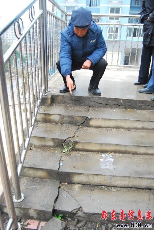 樓房在驗(yàn)收的情況下,出現(xiàn)裂縫是否說(shuō)得過(guò)去呢?就此記者對(duì)鎮(zhèn)遠(yuǎn)縣建設(shè)局質(zhì)檢站有關(guān)負(fù)責(zé)人進(jìn)行了采訪,該負(fù)責(zé)人說(shuō),參與驗(yàn)收的部門(mén)、單位對(duì)西大小區(qū)A樓進(jìn)行驗(yàn)收時(shí),主要驗(yàn)收的是主體工程,室外環(huán)境工程(附屬工程)不在驗(yàn)收之列,上述的樓梯間就屬于室外環(huán)境工程。“西大小區(qū)A樓的主體工程是很扎實(shí)的,完全符合驗(yàn)收條件,不會(huì)有問(wèn)題的。”該負(fù)責(zé)人肯定地說(shuō)。