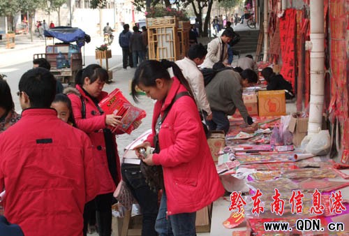 本港訊 (特約記者 張希才 攝影報道)春節即將來臨,雷山縣春節商品市場異常紅火,隨處可見各族群眾購買對聯、燈籠、煙花炮竹、糖果等春節物品的身影。圖為