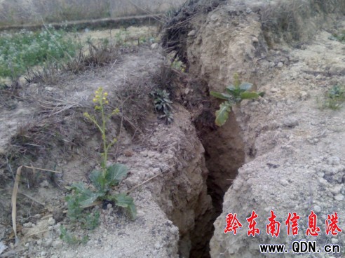 斷裂的土地隨時可能引起塌方