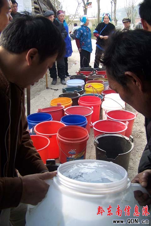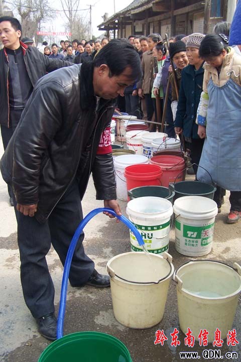 村民們排著長隊迎接政府送來的“責任水”