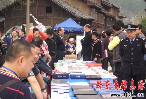 本港訊 (特約記者 侯天智 攝影報道) 3月22日,“世博論壇·和諧城鄉互動發展”大型盛會在西江千戶苗寨隆重舉行,筆者在西江千戶苗寨街頭看到,有關貴州民風民俗的民族文化書籍非常熱銷,圖為國內外游客在選購民族文化書籍的場景。