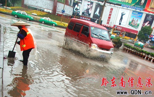 本港訊 (記者 楊驥 攝影報(bào)道)今日凌晨5時(shí)許,凱里市再降大雨,且雨勢(shì)直到9時(shí)許才停。下了近4個(gè)小時(shí)的雨,凱里韶山南路、北京路等、寧波路、洗馬河等主要干道遂成了“街頭河”。據(jù)了解,這是今年凱里街頭首次現(xiàn)“街頭河”景觀。