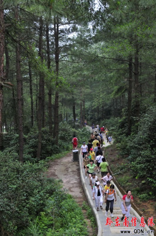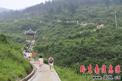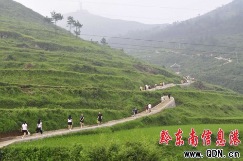 本港訊 (特約記者 陳沛亮 攝影報道)每周六至周日,凱里市區至市郊小高山5公里長的路途上,眾多市民自愿徒步登上1000多米的小高山,進行健身活動,以此提高自己的身體素質,樹立熱愛自然、保護環境意識,用實際行動倡導低碳生活,享受綠色健身的樂趣。根了解,為給市民登山營造良好環境,市政府投資500多萬元,于2009年12月建成小高山車道、人行登山步道等,成了凱里市民休閑和鍛煉的好去處。圖為 6月26日,參加活動的群眾在凱里市郊登山途中。