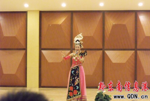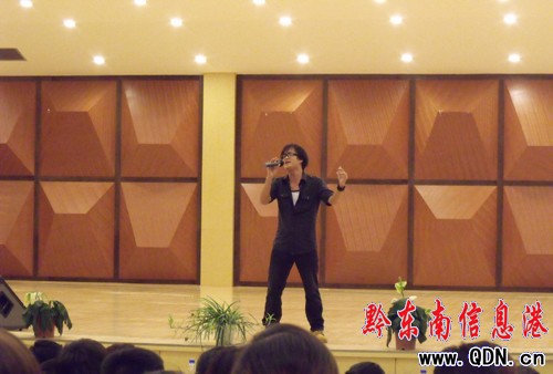 本港訊 (特約記者 楊勝倫 攝影報道)為展現黔東南原創歌曲的文化內涵,同時為了檢驗和分享廣大社員的創作成果。7月9日晚,黔東南原創音樂學會在凱里學院舉行首次“黔東南原創音樂演唱會”。此次演唱會主要由黔東南州10余名知名歌手演唱了《我夢中的黔東南》 、《苗山深處我的家》 、《侗鄉歌聲美》、《鎮遠戀歌 》 等22首原唱歌曲。一位遠從上海來的人士觀賞了演唱會后感慨地說:“終于找到家的感覺了!”。