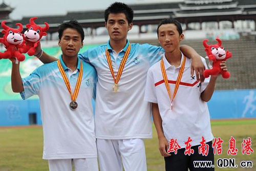 本港訊 (特約記者 黃曉海 攝影報道)7月24日,在凱里市體育場舉行的男子乙組1500米決賽中,丹寨縣選手魏萬亮以4分37.4秒的成績獲得銅牌,并打破了州運會1500米的紀錄,為丹寨代表團奪得了首塊獎牌。據了解,魏萬亮來自丹寨縣興仁鎮,1996年出生,這屆運動會是他參加的第一次參加大型運動會。
