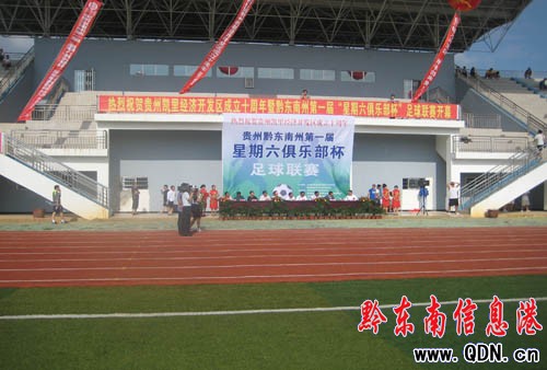 本港訊 (實習記者 龔秀相 攝影報道)我州第一屆“星期六俱樂部杯”足球聯賽開幕式于8月14日在我州凱里學院運動場舉行。