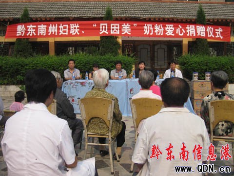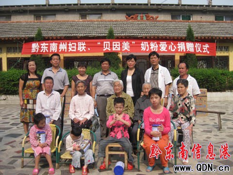 本港訊 (記者 李麗娟 攝影報道)9月1日,黔東南州婦聯王曉琴副主席、吳永宏副主席、州民政局楊崇榮局長一行來到州福利院,把價值近3萬元的“貝因美”奶粉送到福利院的老人和兒童手中。