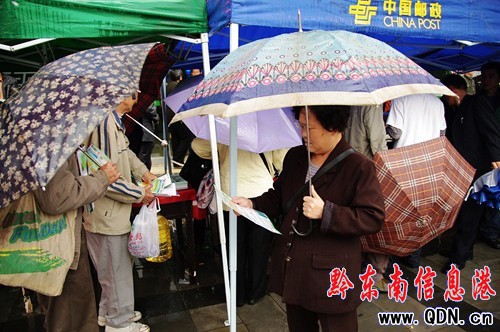 據悉,當日上午,全州各縣市郵政部門紛紛冒著細雨上街來,開展慶祝第40屆世界郵政日活動。圖為州郵政局在凱里開展