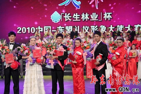 本港訊 (特約記者 楊勝倫 攝影報道)2010中國—東盟禮儀形象大使大賽總決賽于10月10日在廣西南寧落下帷幕。凱里學院學生林安紅、顏蓉、陳霞代表貴州參加總決賽,在比賽中,凱里學院選手表現突出,林安紅同學獲得了季軍,顏蓉、陳霞兩位同學獲優秀獎。