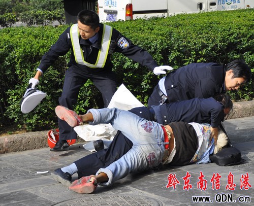幾分鐘后,凱里大十字派出所民警聞訊趕到了現場,3名民警一齊出手,才將男子制服。