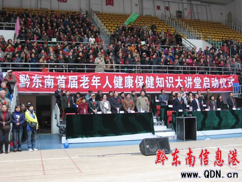 本港訊 (記者 李麗娟 攝影報道)10月28日下午,黔東南首屆老年人健康保健知識大講堂啟動儀式在黔東南州體育館舉行。啟動儀式上,武漢名實生物醫(yī)藥科技有限責任公司談運忠總經(jīng)理現(xiàn)場向黔東南兩位百歲老人無償捐贈了價值15萬元的健康保健品和慰問金,名實公司首席保健專家馬偉功教授現(xiàn)場為大家進行健康講課。