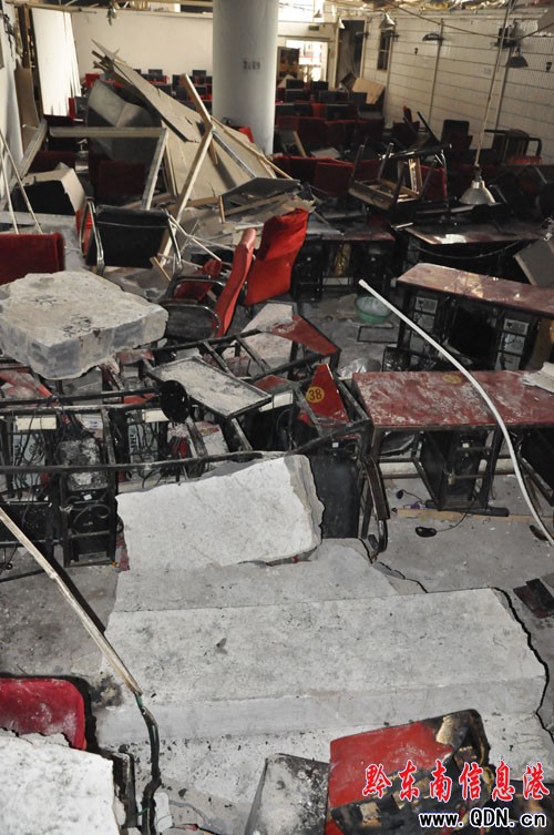 網吧內一片廢墟