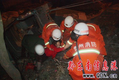 面包車側翻路坎1人被困 消防戰士與死神較量(圖)