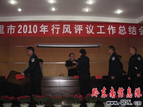 本港訊 (記者 李麗娟 攝影報(bào)道)12月28日,凱里市2010年行風(fēng)評(píng)議工作總結(jié)會(huì)在市行政中心召開(kāi)。會(huì)上,對(duì)市地方稅務(wù)局管理一分局等28個(gè)基層單位和市公安局城西派出所等34個(gè)基層單位進(jìn)行了表彰。