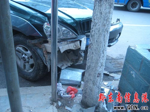 據(jù)了解,30日中午13時(shí)左右,一輛貴H現(xiàn)代越野車從永樂社區(qū)坡頂橫飛直下,兩路人因躲閃不及被撞倒在地,之后該車又撞到一位正在綠化壇邊掃地的環(huán)衛(wèi)工人。“當(dāng)時(shí)我正好路過協(xié)和醫(yī)院,聽到一聲慘叫后,看見一輛現(xiàn)代越野車撞上了綠化帶花壇”,目擊者劉先生告訴記者:“當(dāng)時(shí)我還以為凱里會(huì)出現(xiàn)‘我爸是李剛,我怕誰’的事件,沒想到司機(jī)下車后急忙撥打了120,還好不是李剛事件。”不少目擊者表示應(yīng)該是車子突然失控,才釀成了剛才驚險(xiǎn)的一幕。