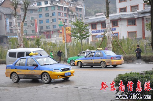 記者在現場觀察了30分鐘,這十余輛凱里的出租車相繼載滿客發出。劍河幾輛膽大的出租車駕駛員見錢眼開,也想搞起這“發財”生意時,卻被其他出租車同行勸說放棄了。