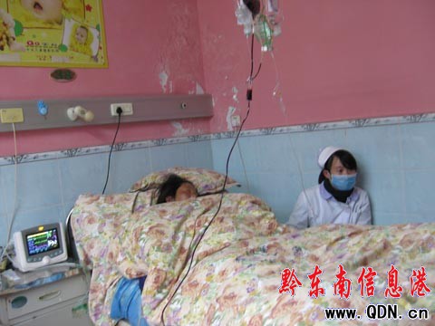 據(jù)病人的愛人陸斌介紹,他和他的愛人都是劍河縣汽車站的職工,龍女士是1月6日晚上21:00入住于貴陽醫(yī)學院第二附屬醫(yī)院(原貴州省四一八醫(yī)院)的。入住醫(yī)院后經(jīng)過一天的觀察與各項檢查,院方在8號早上9點左右對龍女士做了剖腹產(chǎn)手術,手術后一小時,龍女士便出現(xiàn)了大出血現(xiàn)象,流血不止。陸先生悲痛的告訴記者,看著病床上痛苦的妻子他很焦急也很無助,他說,不管怎樣,他都不會放棄對妻子的治療,但是他的能力是有限的,因此,他希望通過媒體,讓社會上的好心人士都能伸出援助之手幫幫他的妻子。