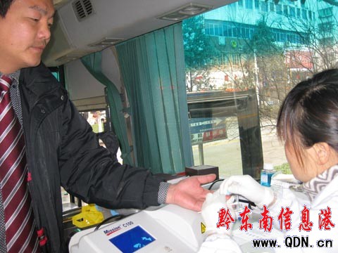 工作人員在驗血型