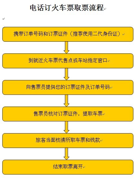 通訂通取:通過電話訂票系統預訂成都局管內任一車站車票后,可在成都局管內任一車站指定窗口或火車票代售點辦理取票(但實名制購票期間,代售點只受理二代居民身份證)。例如:貴陽某旅客可在貴陽訂、取成都站某次列車客票。