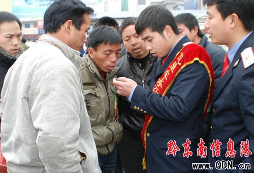 為認真落實“和諧春運、平安春運、總體水平超過往年”的目標。因很多農民工對電話訂票不熟悉。為進一步提高服務質量,凱里火車站成立了一支專為農民工免費電話訂票服務小分隊,走工廠進工地為農民工服務。針對農民工返鄉日期不定、人員分散的特點, 凱里火車站還與工廠、建筑工地建立聯系點,跟蹤掌握農民工返鄉動態,將訂票聯系卡發放到了農民工中,解除了他們返鄉出行的后顧之憂。