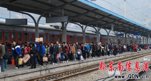2月8日(正月初六),凱里火車站出現(xiàn)節(jié)后第一個(gè)返程高峰。當(dāng)天貴州省管轄的滬昆和黔桂線11個(gè)主要客運(yùn)火車站客流主要是學(xué)生流、探親流、旅游旅客返程和務(wù)工流交織在一起。面對(duì)節(jié)后客流高峰持續(xù)走高,客流壓力將大大超過(guò)節(jié)前,加上節(jié)后南方地區(qū)仍可能出現(xiàn)大范圍的雨雪等不良天氣,鐵路運(yùn)輸部門全力合理調(diào)配運(yùn)力,確保春節(jié)黃金周運(yùn)輸安全有序。