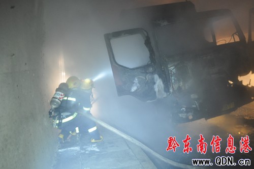 隧道內(nèi)貨車突發(fā)大火 榕江消防緊急滅火救人