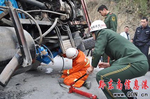大貨側翻一人被困 天柱消防成功營救(圖)