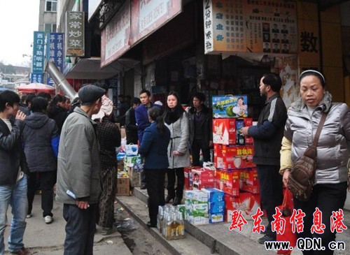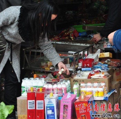 事發后記者聞訊趕到了現場,這里擠滿了看熱鬧的群眾,大家你一言,我一語敘說事發時的情景。遭遇襲擊的小百貨商店一片狼藉,地面上有不少掉落的商品。在店子外的水溝里,還“躺”著一壺酒水,壺蓋已破裂,酒水流了出來。