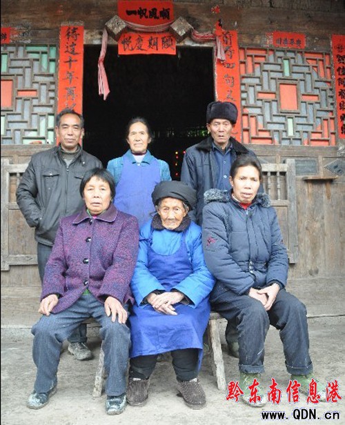 20多歲時,黎明珍就嫁到團巖,他和丈夫養育了5個子女,其中兩個是兒子。他的丈夫也是長壽之人,去世的時候96歲高齡。至今,老太太所在的家庭式五代同堂,兒子兒孫和重孫有近30人。