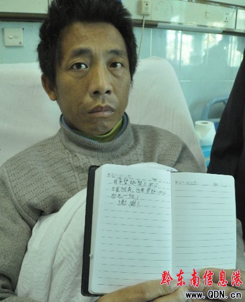 王貴平坐起身來,在記者的采訪本上寫下了24個字:希望她(指女兒王秋菊)努力學習,不要放棄,也希望好心人幫她一把,謝謝!