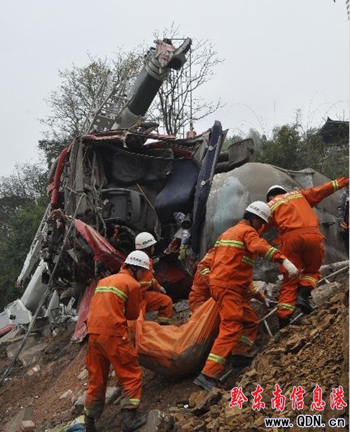 據介紹,事故發生在4月7日晚10時許,肇事罐車由凱里運載水泥前往榕江高速鐵路建設工地,車貨總重近70噸(其中車身19噸)。11時10分許,車輛行至事發處,傳動軸突然斷裂,導致車輛失控,駕駛員見狀立即啟動了應急燈,但來不及了,一輛迎面駛來的面包車被其撞擊,嚴重變形,導致3人受傷。肇事后,罐車隨即翻了幾個滾,一頭扎進十幾米外的凱里市三棵樹鎮瓦寨村委會的辦公樓里,車上的2名司乘人員當場死亡。另據介紹,事故正在發生時,當地一名張姓青年騎摩托車路過。幸好他的車輛在與現場還有20多米的距離,否則,這位青年就會被卷入事故中。