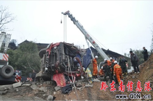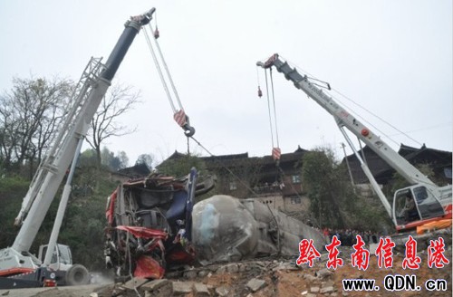 罐車失控沖垮村委會辦公樓 造成2死3傷(圖)