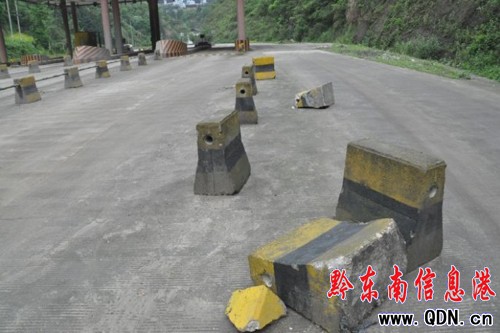 根據(jù)駕駛員們的反映,5月3日,記者趕到位于凱里市龍場(chǎng)鎮(zhèn)境內(nèi)的箐口收費(fèi)站進(jìn)行了采訪。該收費(fèi)站大棚攝入了民族建筑的元素,不僅雄偉壯麗,而且富有特色(如圖)。但是,大棚內(nèi)的設(shè)施就不完整,三個(gè)亭島,有兩個(gè)收費(fèi)亭子已被拆除,留一個(gè)滿身是塵土。部分?jǐn)[設(shè)在大棚外的水泥隔離墩已朽爛,變成垃圾“躺”在公路上(如圖)。 “這些東西放在公路上,有安全隱患。”一位過路的面包車駕駛員說。