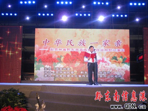 5月7日晚8:00,由國家民委主辦的“中華民族一家親”赴貴州慰問演出活動,首場演出在黔東南凱里萬博廣場隆重上演。演員們精彩絕倫的表演為凱里人民帶來了一場視聽盛宴。