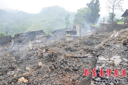 5月10日下午,凱里市凱棠鄉(xiāng)大坪村發(fā)生一起嚴(yán)重火災(zāi)事故,造成20戶23棟房屋被毀,受災(zāi)群眾106人。
